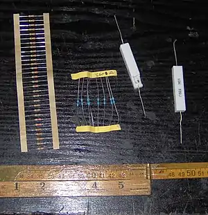 - Wirewound: Used for power resistors, since the power per volume ratio is highest. These usually have the lowest noise.
