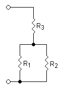 Resistors in parallel are evaluated as if in a mathematical set of "parentheses." The most basic group of resistors in parallel is evaluated first, then the group in series with the new equivalent resistor, then the next group of resistors in parallel, and so on. For example, the above portion would be evaluated as follows: