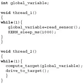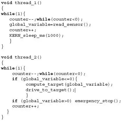When implementing the software code in a robot, there can be problems with synchronous threads. This section gives some bad programming examples in multithreaded systems. It is illustrated in C-code. They are concerned because it is a first step to understand problems which occur do to concurrent engineering on a higher level.