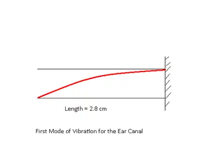 The ear canal can be modeled as a tube approximately 2.8 cm long that is closed at one end by the tympanic membrane. Unlike a rigid tube that has a sharp spike in amplitude at the resonant frequency,the ear canal has a wide resonance peak from approximately 2–5 kHz.[1] It is important to remember the ear canal is not rigid nor is not a straight tube, and therefore damping is introduced.While damping is introduced to the system, thereby altering the resonant frequency, the important thing is that the ear canal can raise the Sound Pressure Level (SPL) of the ear by up to 15 dB which will amplify the incoming acoustic signal.[2]