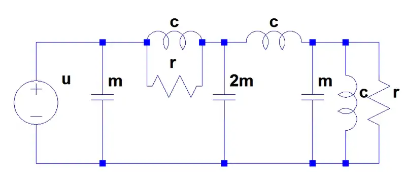 If the mass can vary its value and is oscillating in a mechanical system at max amplitude such that the input the system receives is constant at frequency , as increases, the harder it will be for the system to move the mass at at until, eventually, the mass doesn’t oscillate at all . Another equivalently way to look at it is to let vary and hold constant. Similarly, as increases, the harder it will be to get to oscillate at and keep the same amplitude until, eventually, the mass doesn’t oscillate at all. Therefore, as increases, the “reactiveness” of mass decreases (i.e. starts to move less and less). Recalling the analogous relationship of force/voltage and velocity/current, it turns out that the characteristics of a mass are analogous to an inductor. Therefore, we can model the “reactiveness” of a mass similar to the reactance of an inductor if we let as shown in Fig. 4.