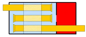 In order to incorporate the mechanical resistance (or damping) into the forced oscillator model, a dashpot is placed next to the spring. It is connected to the mass () on one end and attached to the ground on the other end. A new equation describing the forces must be developed: