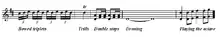 The Donegal style of fiddling is a label often applied to music from this area, though one also might plausibly identify several different, but related, styles within the county.[9] To the extent to which there is one common style in the county, it is characterized by a rapid pace; a tendency to be more un-swung in the playing of the fast dance tune types (reel and jigs); short (non-slurred), aggressive bowing, sparse ornamentation, the use of bowed triplets more often than trills as ornaments, the use of double stops and droning; and the occurrence of "playing the octave", with one player playing the melody and the other playing the melody an octave lower. None of these characteristics is universal, and there is some disagreement as to the extent to which there is a common style at all. In general, however, the style is rather aggressive.[1]