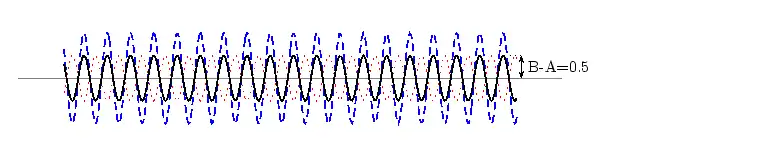 In physics we try to be as quantitative as possible. If we look very carefully we notice that the height of the peaks above the level of the still water is the same as the depth of the troughs below the level of the still water. Waves are repetitions of physical quantity in a periodic manner, carrying energy in the process. The water waves, for example, can be visualized to repeat any of the physical quantities like "peaks", "troughs", "potential energy" or "kinetic energy". Even, we can visualize water waves as the motion of disturbance (energy). It is the energy aspect of waves that is central to the understanding of different types of waves, many of which are not visible. Looking closely at the water wave, we can recognize that crests and troughs basically represent of extreme potential and kinetic energies in addition to representing rise and fall of water from the still level. At the peak, energy is only potential, whereas energy is only kinetic at the trough. Similarly, propagation of electromagnetic wave is associated with repetitions of magnetic and electric field in space with certain periodicity. As existence of electrical or magnetic fields does not require any medium, electromagnetic waves can move even in the absence of any medium. Characteristics of Waves: AmplitudeWe use symbols agreed upon by convention to label the characteristic quantities of the waves. The characteristic height of a peak and depth of a trough is called the amplitude of the wave. The vertical distance between the bottom of the trough and the top of the peak is twice the amplitude. To put it simply, the amplitude is the distance of the wave from the medium, to the crest or trough
