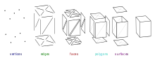 Elements of polygonal 3D mesh