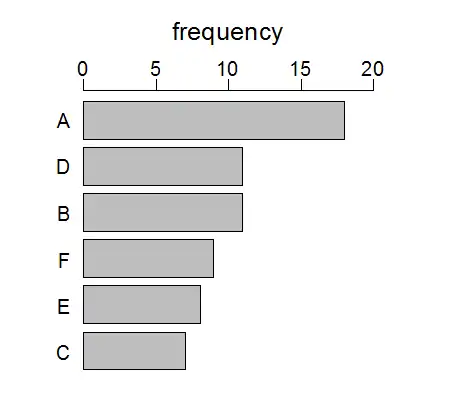The above exhibit is about the simplest visual description of the NOMINAL variable. Note that the vertical axis shows the values ordered by their frequencies, so you can easily see which values are the most and least common.