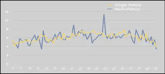 The figure below shows a typical example of how trips vary by age in both single-family and multi-family residence types.