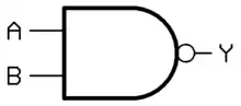 The NAND gate is the same as an AND followed by a NOT, so is the inverse of an AND gate.