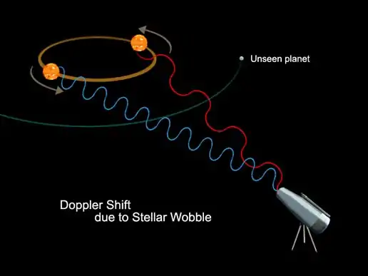 The three ways we detect this wobble are by radial velocity, astrometry, and pulsar timing. Radial velocity measurements detect the blue and red shifts of a star as it moves toward and away from Earth, respectively. As the star moves toward Earth, the light shifts to blue. As the star moves away from Earth the light shifts to red. The radial velocity can be deduced by studying the red and blue shifts in the spectroscopy of the star’s emission. Most exoplanets have been discovered by the radial velocity method. [17]