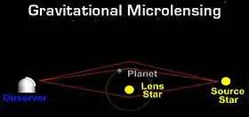 - ↑ Sackett, Dr. Penny D. "Microlensing exoplanets." 5 Aug. 2008. Http://www.scholarpedia.org/article/Microlensing_exoplanets.com