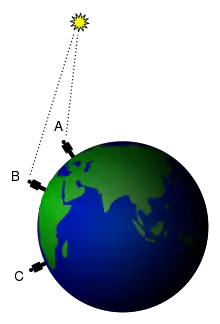 In the third century BC, the Hellenistic Egyptian scholar Eratosthenes served as head of the library of Alexandria, where he studied and wrote on a variety of subjects. During his studies, Eratosthenes learned that the Sun cast no shadow on midday of the summer solstice from the city of Syene. From Alexandria, Eratosthenes observed that the Sun did cast a shadow, and he measured that the angle between the Sun and the zenith was about seven degrees when the Sun was highest in the sky.
