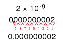 which is a three followed by 39 zeros. A number written in scientific notation with a negative power corresponds to a small number. For example, the number 1 × 10−3 is written as 0.001 in conventional notation. In general,