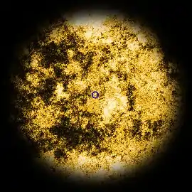The next step in our journey will encompass a distance of 30,000 AU, or half a light-year. Although this step completely encloses the planets, Solar System objects are found at much greater distances. These objects form the Oort cloud — a vast, sparse region of comets surrounding the Sun. The Oort cloud is almost empty, but it's there just the same. At this step we've only covered a piece of the range of influence of the Sun, and plenty of Oort cloud remains out of our reach. The Oort cloud is thought to extend out from the Sun as much as two light-years.