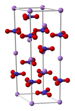 ![]() The ions arrange themselves into a lattice where each ion is surrounded by ions of the opposite type. | ![]() An example of both atomic (Li+) and molecular (NO3-) ions |