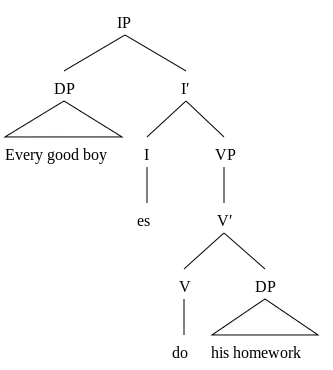 The VP-internal subject hypothesis states that the subject originates from inside the VP, and moves to the IP's subject position. For now, we'll take this for granted, but we'll return to the hypothesis soon. By this hypothesis, (9a) can be written thus: