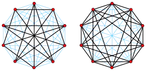 A complete graph is one for which all pairs of vertices are connected by an edge. A complete graph on vertices is denoted .