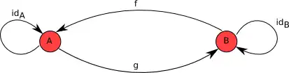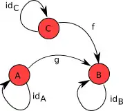 Secondly, the category needs to be closed under the composition operation. So if and , then there must be some morphism in the category such that . We can see how this works using the following category: