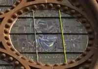- (b) The radius of the glass portion of this window is approximately 1.20 m. Calculate an estimate of the length of the highlighted chord to the nearest cm. Explain the reasoning behind your solution.