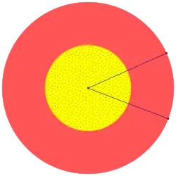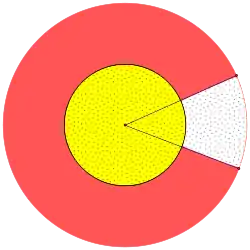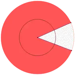 - First, calculate the area of the red ring as if it went completely around the circle: