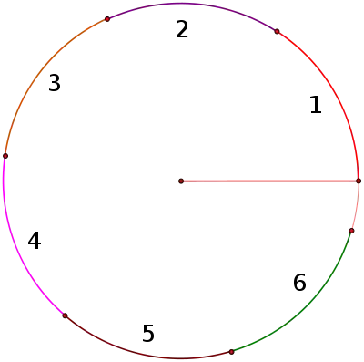 What if we were to rotate all the way around the circle? Continuing to add radius lengths, we find that it takes a little more than 6 of them to complete the rotation.