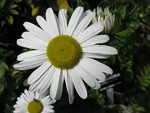 The Nippon daisy (Nipponanthemum nipponicum, synonyms include Chrysanthemum nipponicum and Leucanthemum nipponicum) is a large bushy perennial which is grown for its good foliage and the large daisy-like flowers in mid- to late autumn.