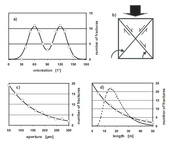Note that for a high value for , the exponential distribution becomes steeper and short fractures are more numerous whereas a small favors longer fractures.