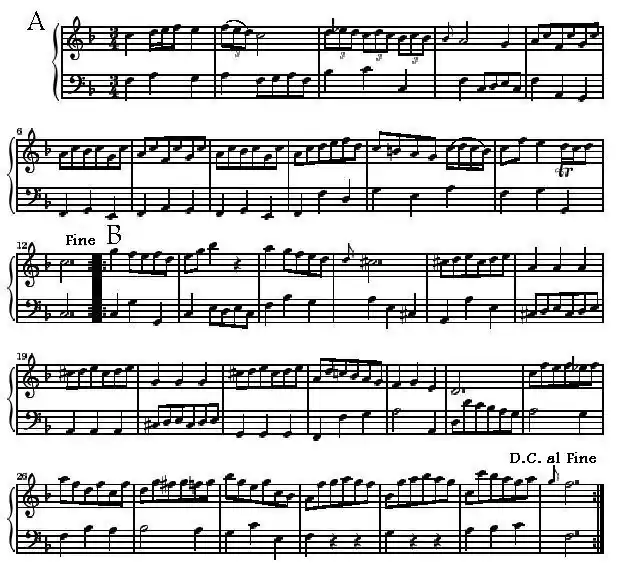 The form of a piece is the overall structure it takes. For example, a piece might take the most common, ternary, form (ABA). In this form, a section of music will be played and a different section will follow it. After the second section is played, the piece returns to the original section of music and plays it over again.