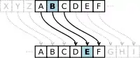 Instead of a preset rule to always substitute each letter with another letter according to a rule such as the Caesar cipher, with a substitution cipher, each time a character is shown, a certain other character is written. All 26 letters of the alphabet are used and there is no overlap. An example may be to send A to T, B to K and so on. Because each letter has a unique mapping onto the ciphertext, in mathematical terms, this particular cipher is called one-to-one. One of the simplest and oldest substitution cipher is to simply write the alphabet forward and then backwards underneath (Gardner, 1972): [4]