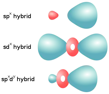 In certain transition metal complexes with a low d electron count, the p-orbitals are unoccupied and sdx hybridisation is used to model the shape of these molecules.[9][11][10]