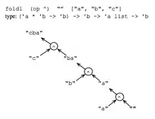 - foldr (op ^) "" ["abc","def","ghi"];