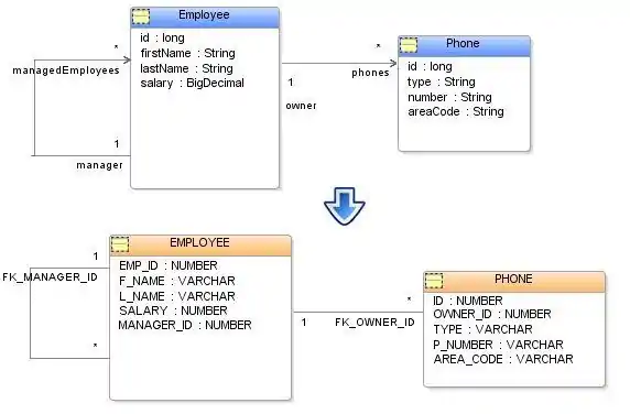 JPA also defines a OneToOne relationship, which is similar to a ManyToOne relationship, except that the inverse relationship (if it were defined) is a OneToOne relationship. The main difference between a OneToOne and a ManyToOne relationship in JPA is that a ManyToOne always contains a foreign key from the source object's table to the target object's table, whereas a OneToOne relationship the foreign key may either be in the source object's table or the target object's table.