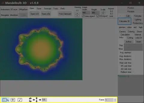 Mandelbulb3D Bottom Toolbar highlighted in the Main Window