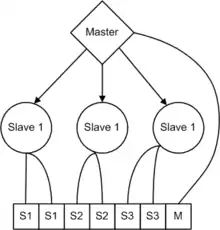 - The master receives the data in a predefined order (the first slave and then the second). However the second slave can finish before the first