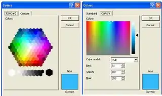 Either of the two dialogs below will then come up. You'll see you can flick between them by choosing the Standard or Custom tabs.