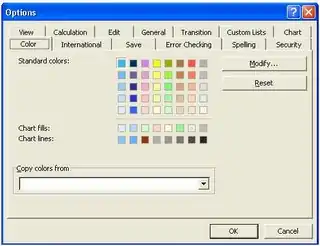 So how do you change them? Click on Tools, Options, then the Color tab. You should see the color palette below.