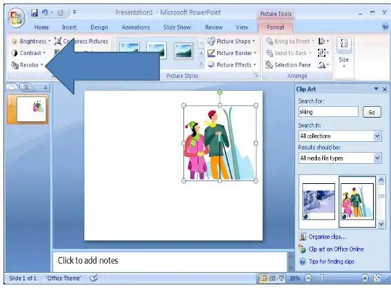 - Click the RECOLOR button in the ADJUST group