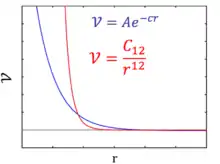 A comparison of the polynomial and exponential form of the potential is illustrated on the right (Figure: Comparison of Pauli Repulsion Formulae). While the functions appear to be very different for small , the difference is immaterial considering that the probability of being in such a high energy regime is so low.
