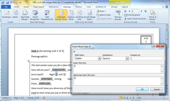 - You can set up a Word merge to merge test data into a Word version of the paper CRF to test the system