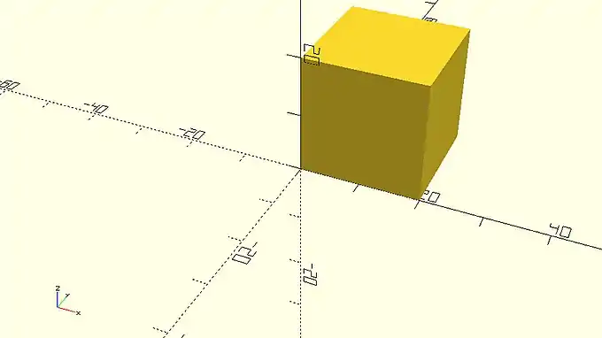 You should notice that every cube is created on the first octant. You can define an additional parameter named center and set it equal to true in order to make the cube centered on the origin. The complete statement is the following.