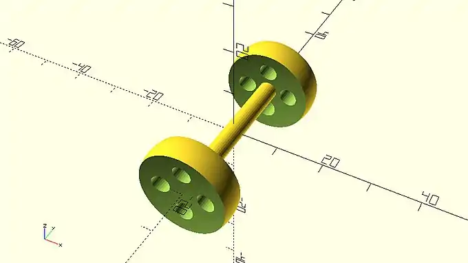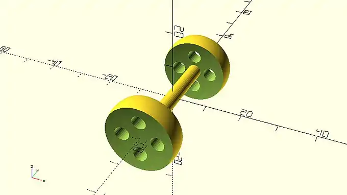 axle_with_flipped_different_wheels_from_parameterized_module.scad axle_wheelset() {