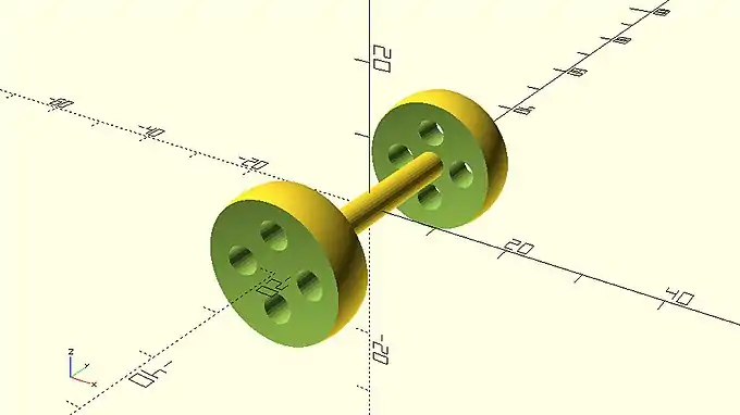 simple_wheel(wheel_radius=wheel_radius, wheel_width=wheel_width);