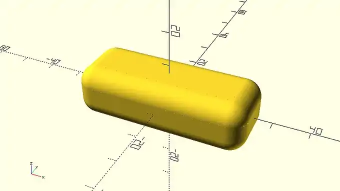 horizontal_completely_rounded_box.scad use <MCAD/boxes.scad> $fa=1; $fs=0.4; roundedBox(size=[50,20,15],radius=5,sidesonly=false); |