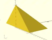An upside-down half-pyramid is a useful shape for 3D printing a support for an overhang protruding from a vertical wall. With sloping sides no steeper than 45°, no removable support structure needs to be printed.
