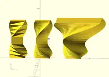 ![]() Example Linear Extrude of a rectangle with twist following part of a sine curve function |