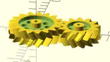 use <MCAD/involute_gears.scad> test_bevel_gear_pair();