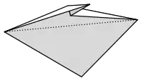 - Reverse the lower left edge, so that it is a mountain fold as seen from the inside, and a valley fold as seen from the outside.