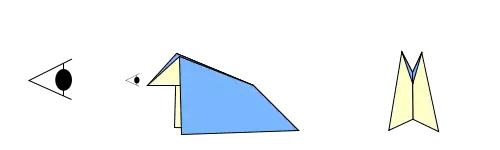 There are some symbols that have been used by some authors but are not accepted into the Yoshizawa-Randlett system. Robert Lang has introduced a “view from here” symbol that looks like an eye which has proven to be very useful, especially with his signature three-dimensional models.