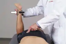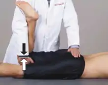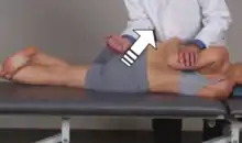 | Extension | Knee is extended off the table | ![]() Spencer's technique of the hip - extension |