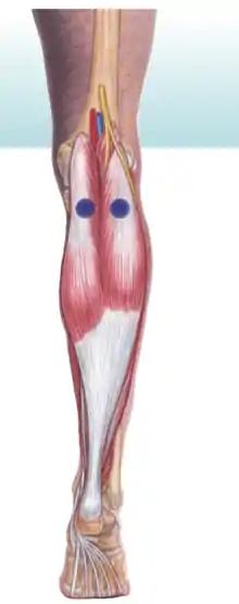 Tibial nerve (S1, S2) | ![]() 1 - triceps surae (gastrocnemius) |
