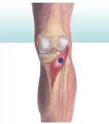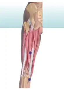 | Semimembranosus | Ischial tuberosity | Medial tibial condyle |